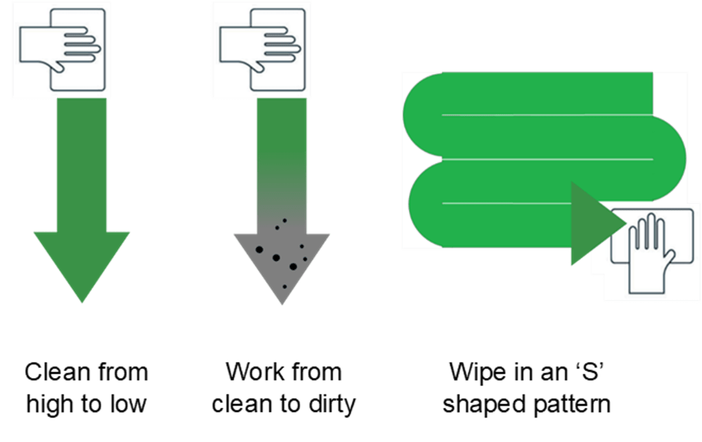 - Two step method – the surface is first cleaned with detergent and water and then disinfected using an appropriate disinfectant.
